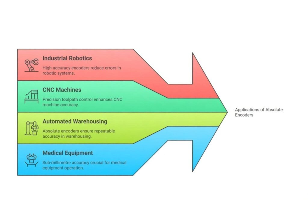 Consider the infographic below to learn more about the applications of absolute rotary encoders: